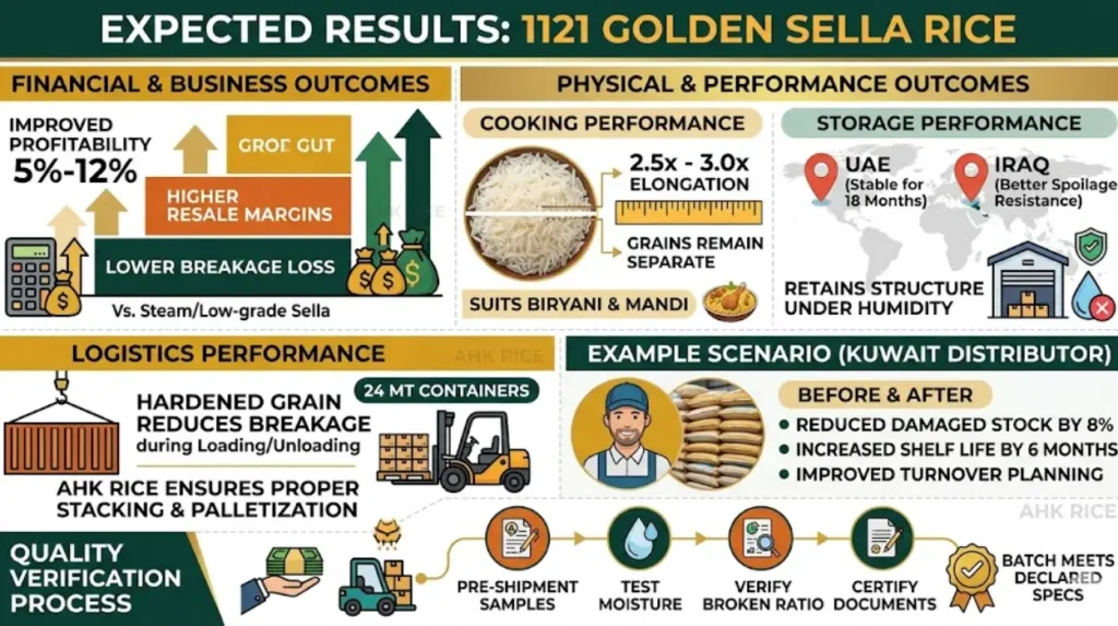 A Kuwait distributor imports 24 MT containers monthly. Switching from steam to Golden Sella reduced damaged stock by 8%. The distributor increased shelf life by 6 months. This improved turnover planning.