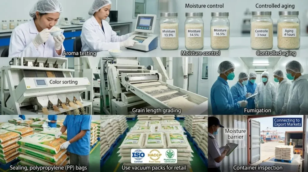 Exporters maintain aroma quality through controlled aging, moisture management, and multi-stage inspection systems across the supply chain.