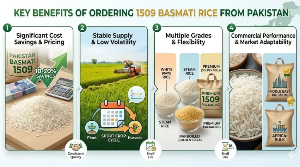 What are the benefits of ordering 1509 Basmati rice from Pakistan?