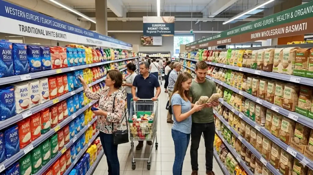 Western Europe prefers white basmati for retail volume, while Northern and Central Europe show increasing demand for brown basmati in organic and health segments.