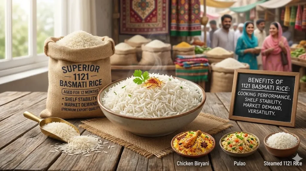 What are the benefits of 1121 basmati rice?
